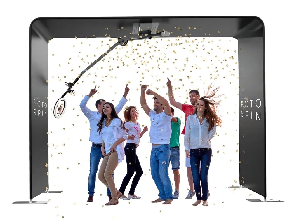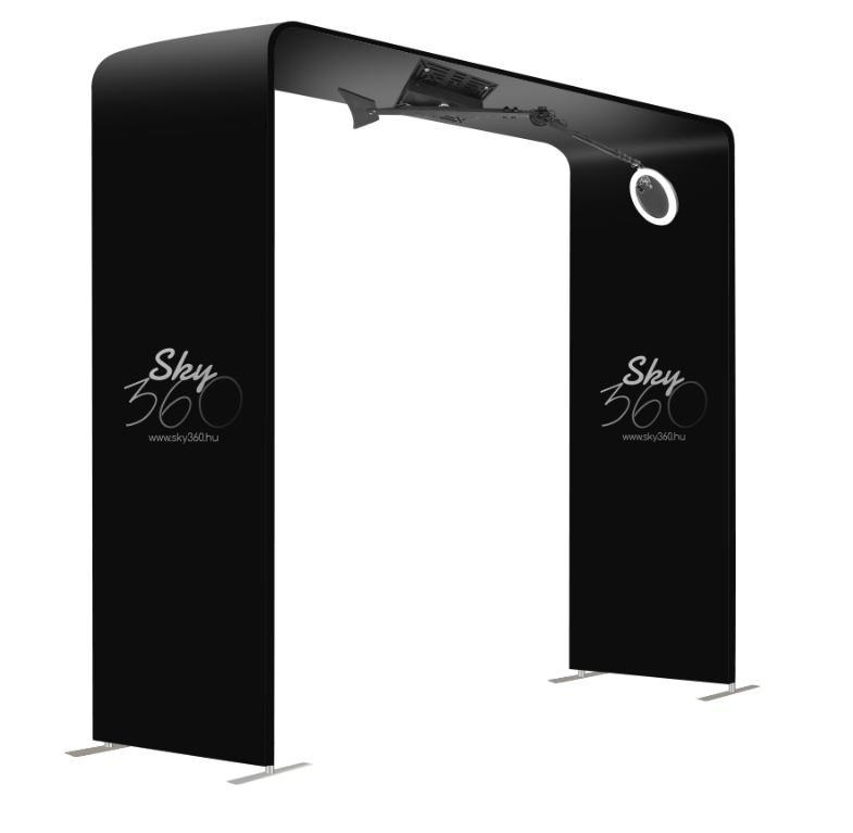 PartySelfie SKY360 - A PartySelfie 360 platformtól eltérően itt a kamerás forgókar 2,5méter magas van felszerelve. Látványos, szerkezet, ami alá akár 8-10 személy állhat.